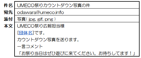 提供いただいた写真に、先のようなUMECO祭りまでの残り日数を追記します。