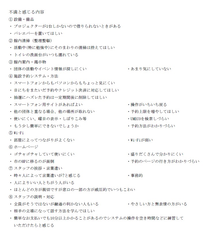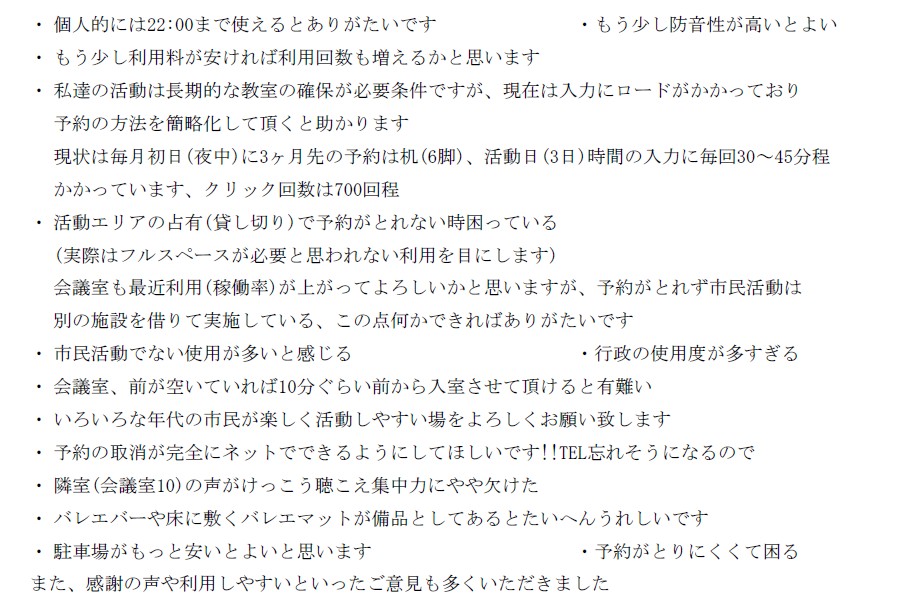 いただきましたご意見を参考により良い施設運営を行い、市民活動を応援していきます。