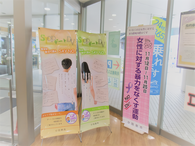内 容:女性に対する暴力をなくす運動期間の啓発のパネル展示、パープルリボンの配付を行います。