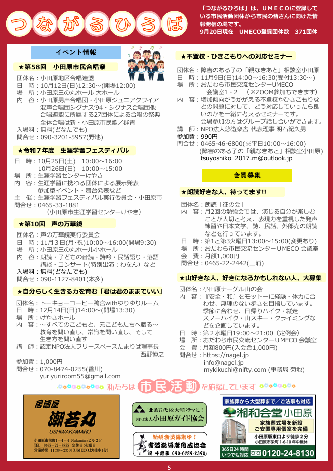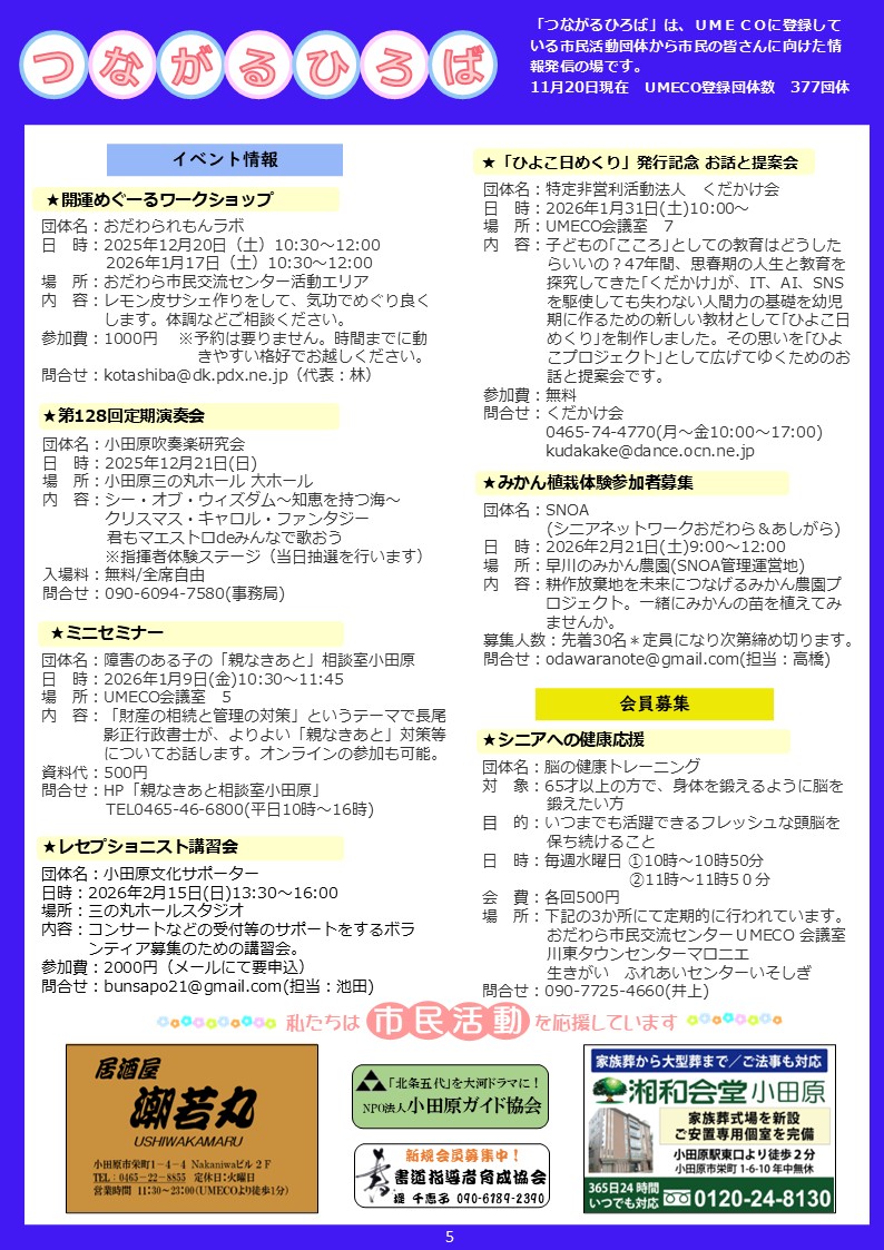 【UMECOだより2・3月号「つながるひろば」記事募集】「イベント・講座・ボランティア募集」情報を掲載できます!