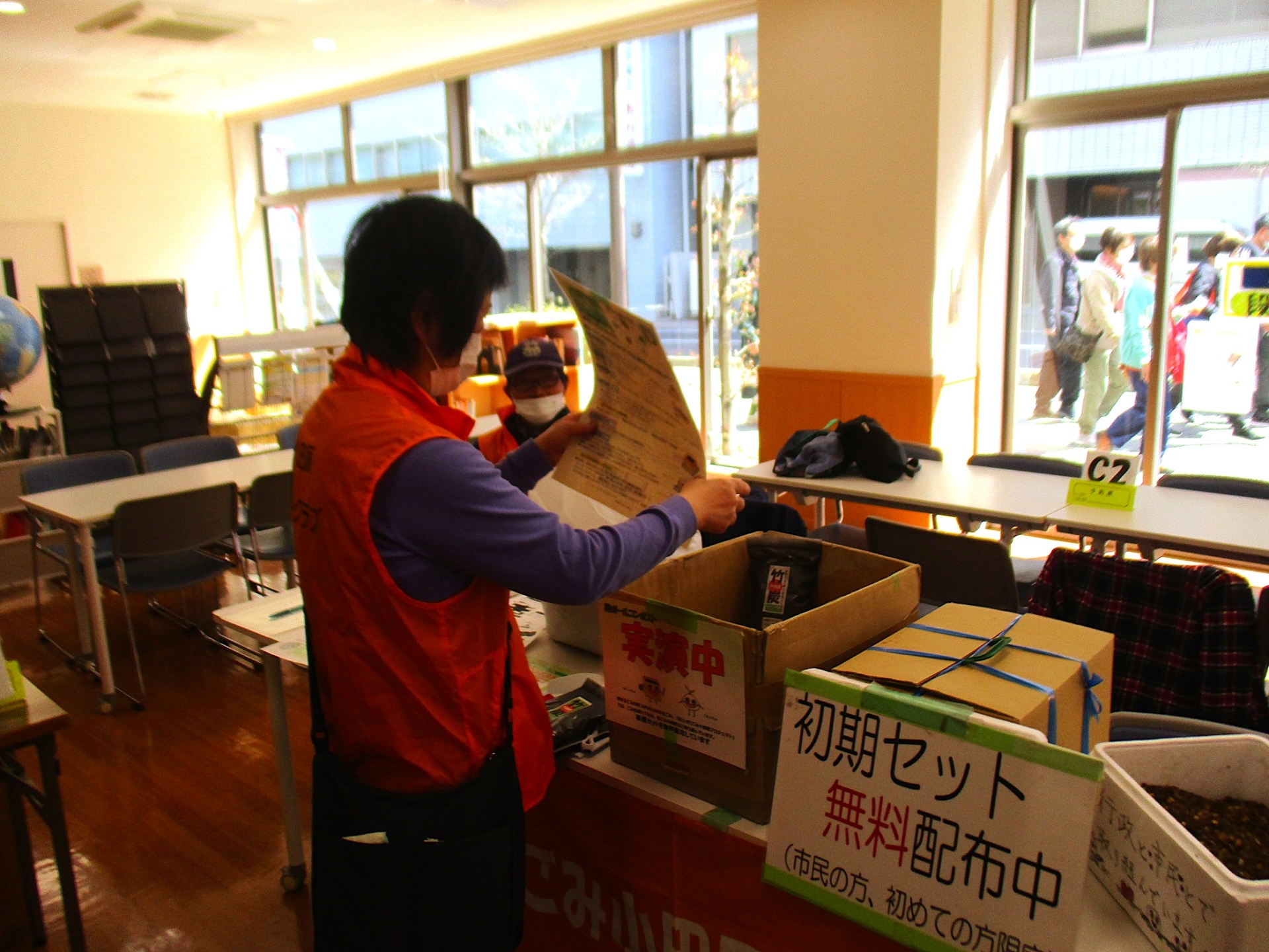 段ボールコンポストの実演と新規セットの無料配布